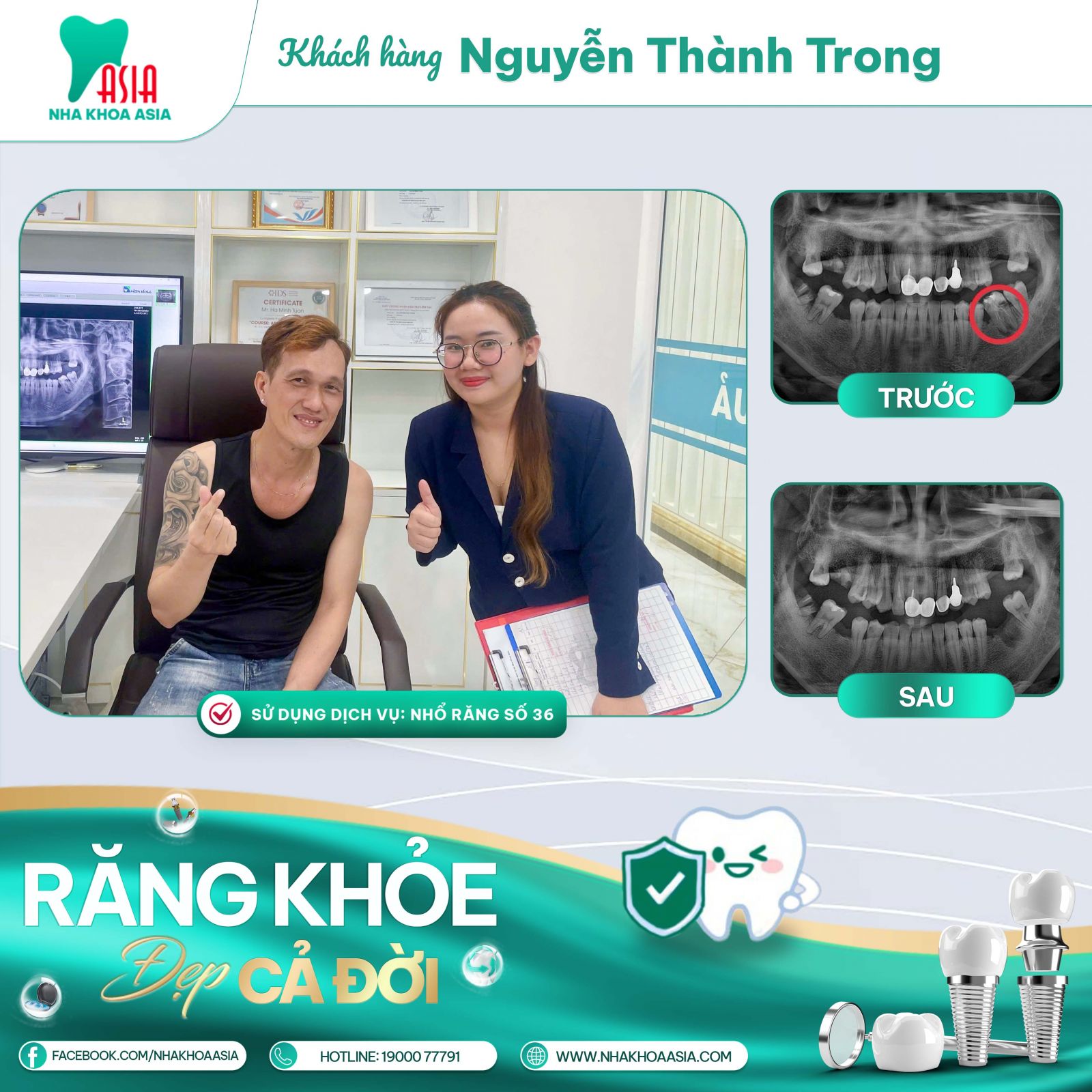Không chỉ riêng anh Thành Trong, hàng ngàn khách hàng khác sau khi trải nghiệm dịch vụ nhổ răng tại Nha Khoa Asia đều để lại phản hồi tích cực: