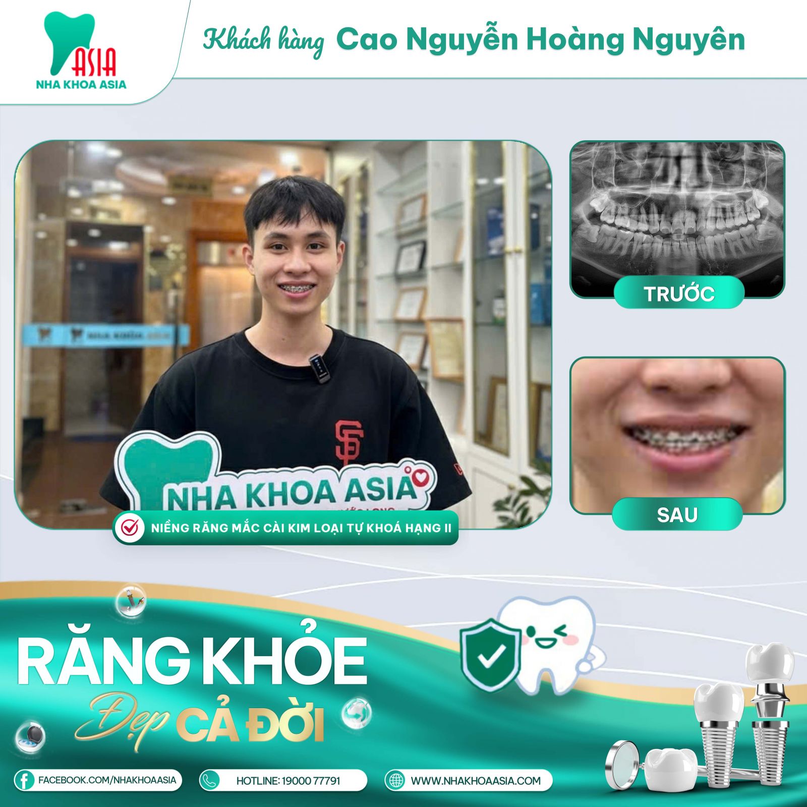 Niềng răng tại nha khoa Asia không chỉ là quá trình chỉnh nha, mà còn là hành trình thay đổi nụ cười – thay đổi cuộc sống. Một trong những câu chuyện truyền cảm hứng là trường hợp của bạn Cao Nguyễn Hoàng Nguyên, người đã trải nghiệm dịch vụ niềng răng mắc cài tự khóa tại Nha Khoa Asia.