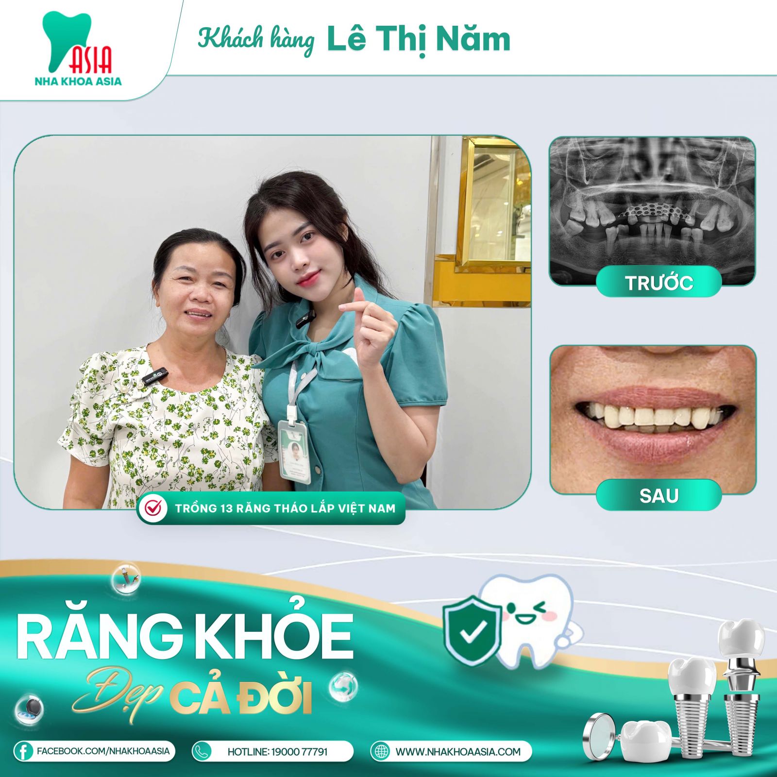 Trong số các địa chỉ uy tín được tin tưởng, Nha khoa Asia đã giúp hàng ngàn khách hàng khôi phục lại nụ cười và chức năng răng miệng, trong đó có cô Lê Thị Năm – người đã có trải nghiệm tuyệt vời khi làm 13 răng tháo lắp tại Nha khoa Asia.