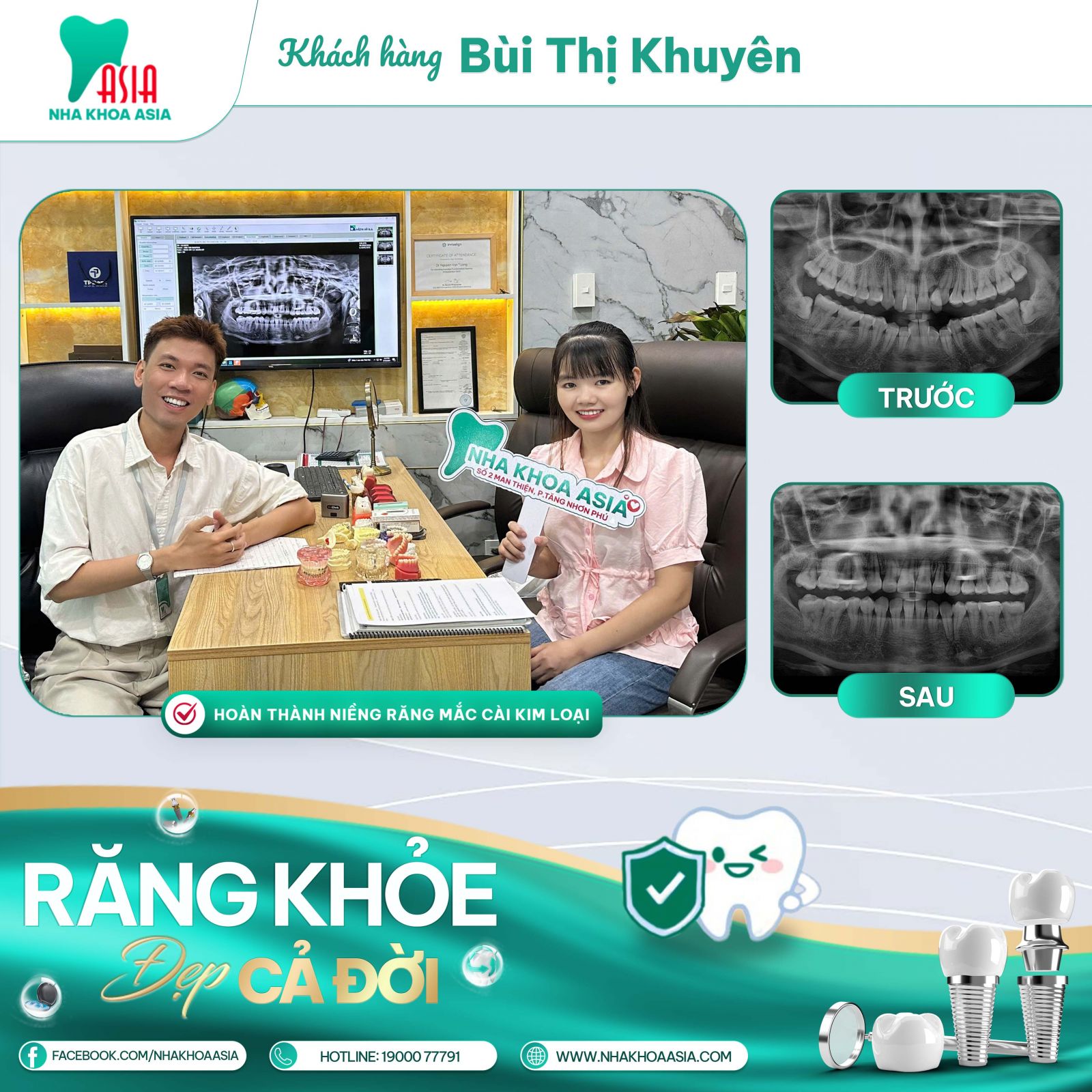 “Niềng răng không chỉ thay đổi nụ cười, mà còn thay đổi cả sự tự tin trong tôi.” – đó là chia sẻ chân thành của chị Bùi Thị Khuyên, một khách hàng đã hoàn thành quá trình niềng răng mắc cài kim loại tại Nha Khoa Asia.