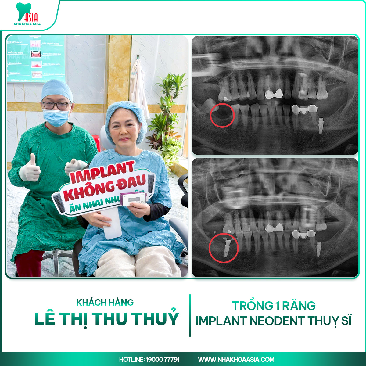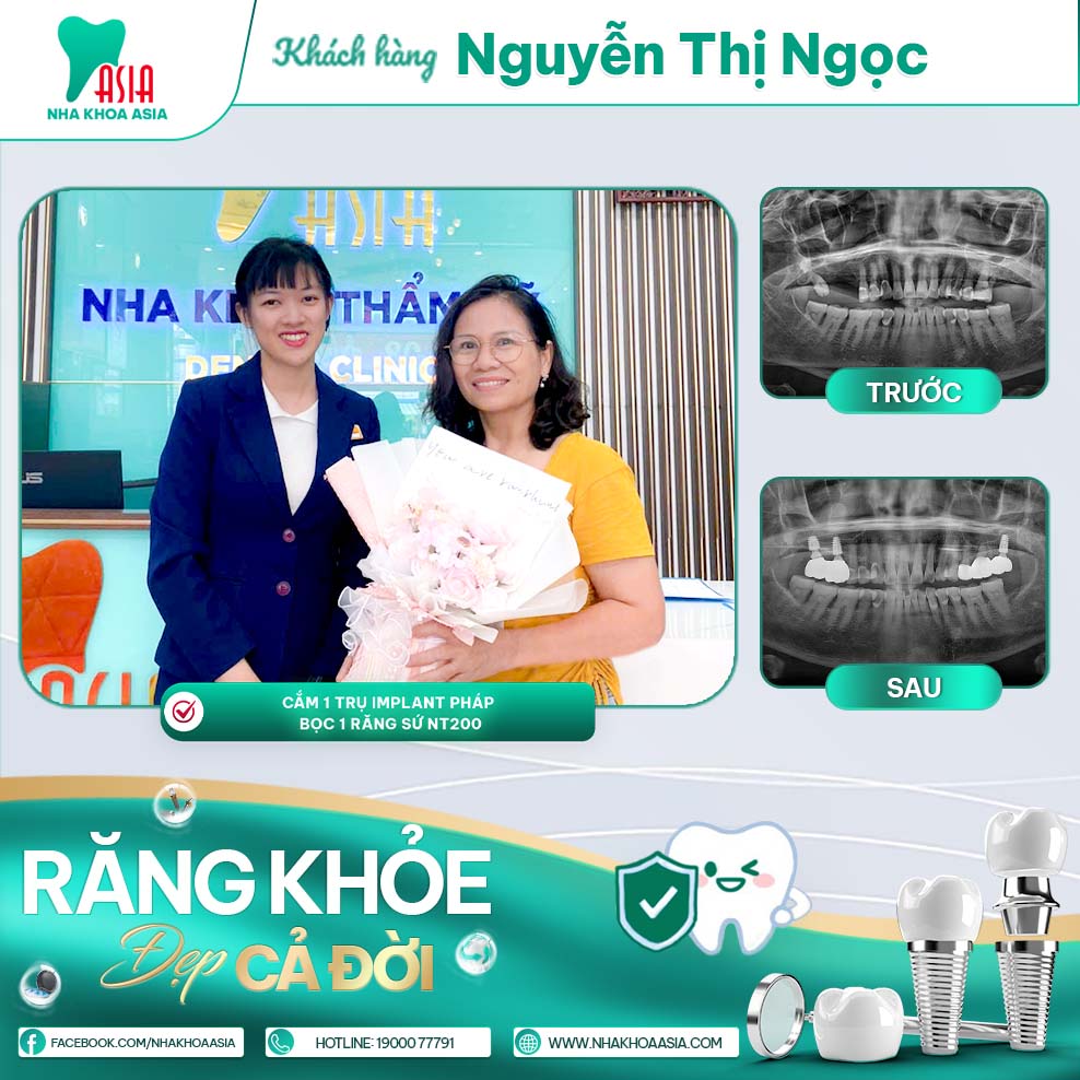 Trồng răng Implant và bọc răng sứ không chỉ là phục hình thẩm mỹ, mà còn là đầu tư cho sức khỏe răng miệng và chất lượng cuộc sống lâu dài. Tại Nha khoa Asia, mỗi khách hàng đều được chăm sóc tận tình, được thiết kế phác đồ điều trị riêng để đạt kết quả tốt nhất – bền, đẹp và tự nhiên nhất. “Một nụ cười khỏe mạnh, tự tin – chính là hành trình mà Nha khoa Asia luôn đồng hành cùng bạn.” Tận tâm, chuyên nghiệp và luôn đặt niềm vui của khách hàng lên hàng đầu