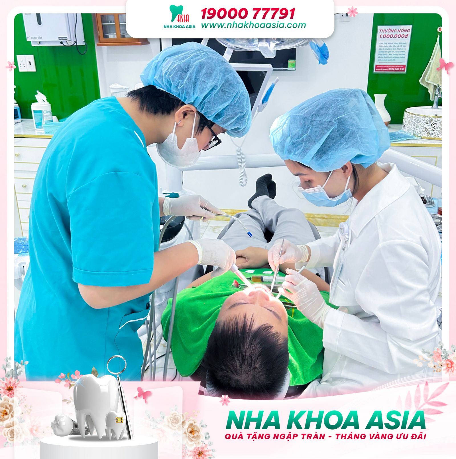 Nha khoa Asia áp dụng quy trình vô trùng tuyệt đối, cùng kỹ thuật gây tê hiện đại giúp khách hàng không đau, không sưng trong quá trình trồng răng hay bọc sứ.